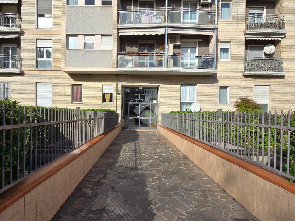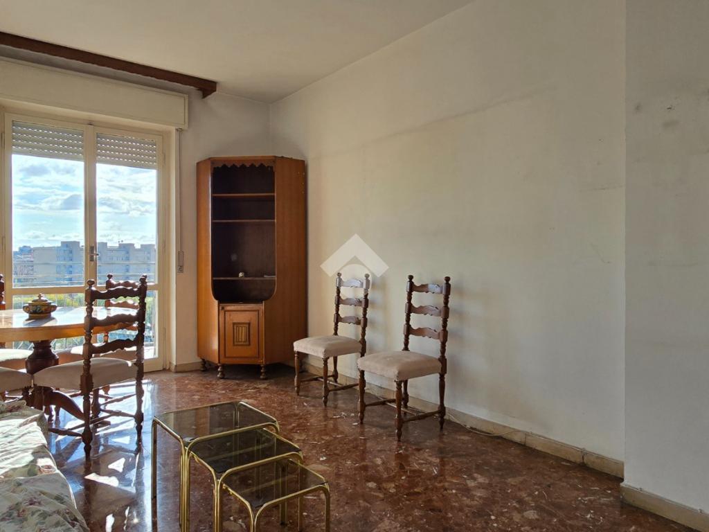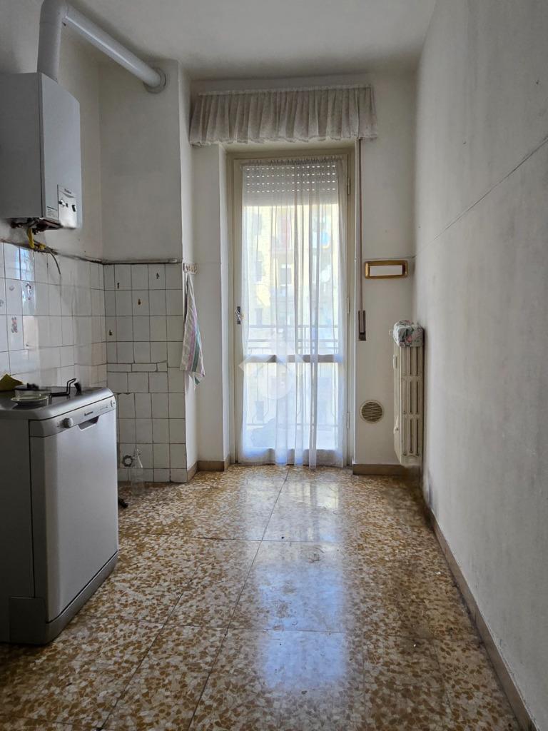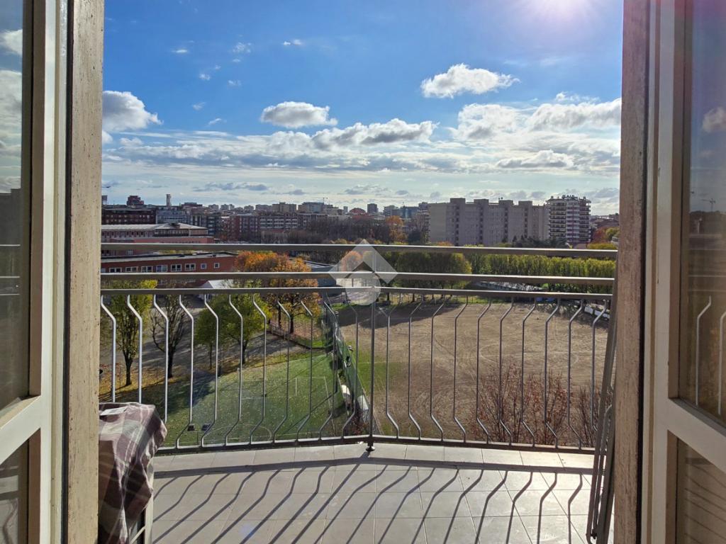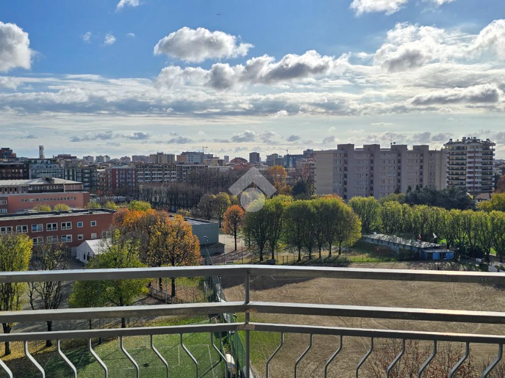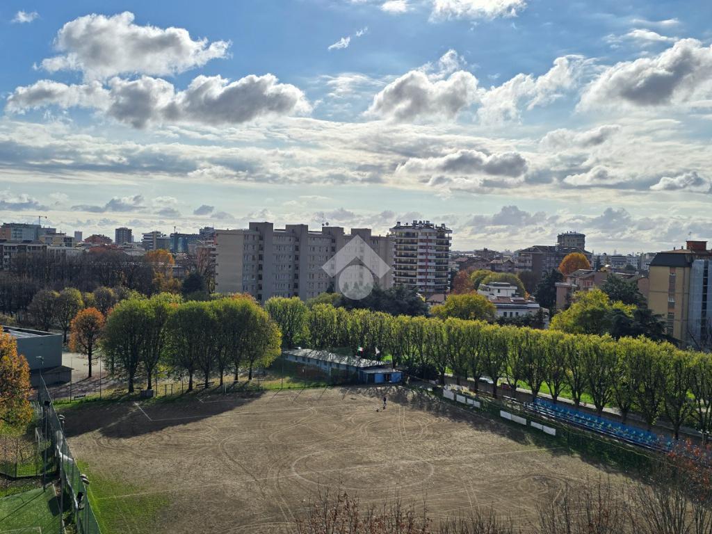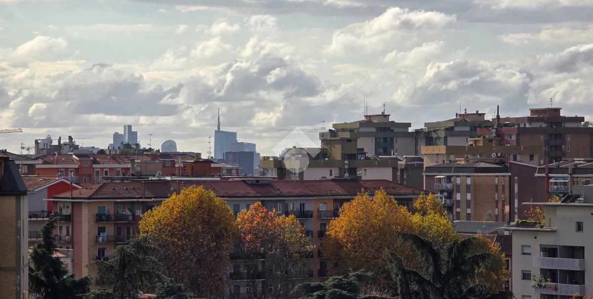 Situato a un piano alto, l'immobile offre una vista panoramica su Milano, garantendo un ambiente luminoso e arioso grazie alla doppia esposizione e ai tre balconi. L'immobile si compone di un lungo corridoio che porta al soggiorno, di un'altro disimpegno che accede alla cucina abitabile, alla camera, al bagno e ad un pratico ripostiglio. La metratura consente di poter realizzare un tre locali. Libero subito, rappresenta un'ottima opportunità per chi desidera vivere vicino a Milano senza rinunciare alla tranquillità.